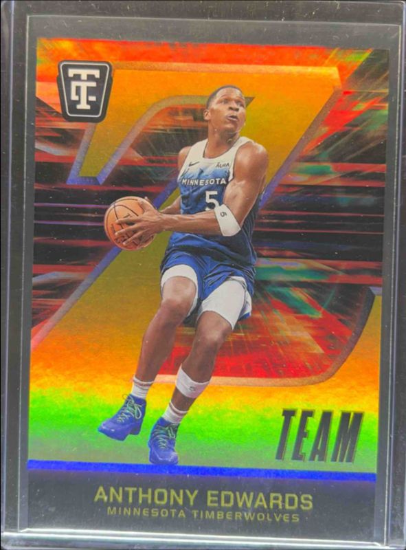 The Anthony Edwards 2024 Totally Certified #13 Z Team Mirror - Gold Platinum /10 card is 1 of 92 Anthony Edwards' card variations in the 2024 Totally Certified set being tracked by Sports Card Investor, including Base, Bronze Mirror, Maroon Mirror, Purple Mirror, and Mirror.