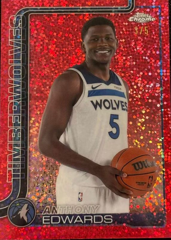 Recent Sales of Anthony Edwards 2025 Topps Chrome #151 Image Variation - Red Speckle Refractor /5 Raw