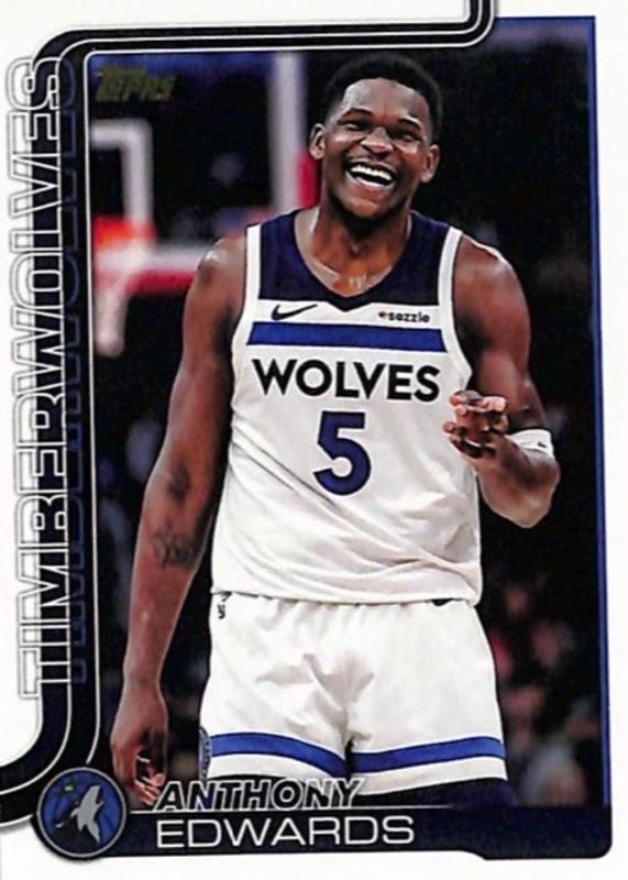 This card is 1 of 59 Anthony Edwards' card variations in the 2025 Topps set being tracked by Sports Card Investor, including Blackout Variation, Blue Sandglitter, Cart Load, Cyber Circuit, and Doorbuster.