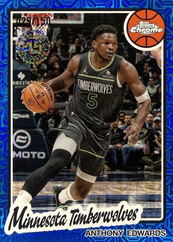 ANTHONY EDWARDS 2025-26 TOPPS CHROME SILVER PACK 1980 45TH BLUE /150 Q5829