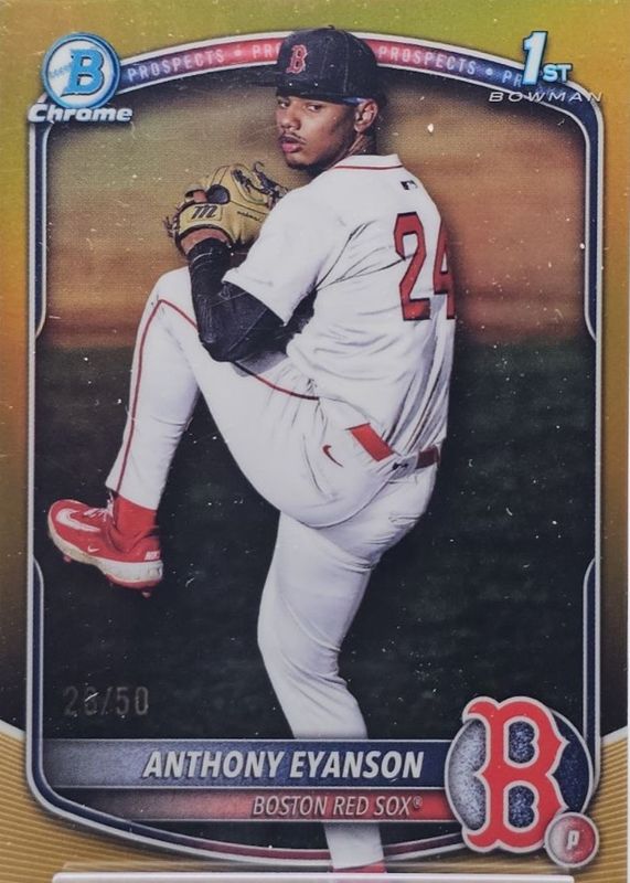 The Anthony Eyanson 2025 Bowman Draft #BDC-116 Chrome - Gold Refractor /50 (1st) card in Raw condition has not changed in price in the last 30 days and was last sold for $51.24 .