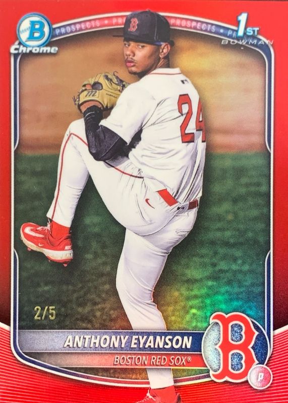 The Anthony Eyanson 2025 Bowman Draft #BDC-116 Chrome - Red Refractor /5 (1st) card in Raw condition has not changed in price in the last 30 days and was last sold for $248.38 .