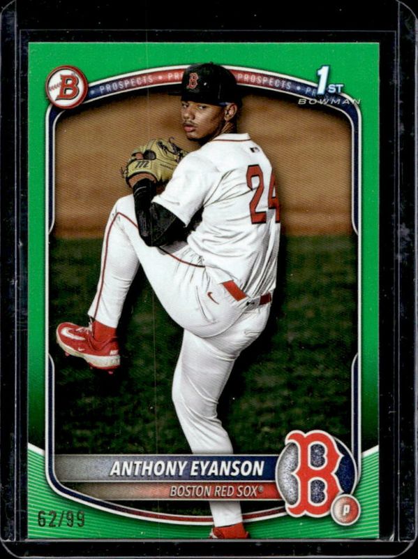 The Anthony Eyanson 2025 Bowman Draft #BD-116 Green Border /99 card is 1 of 86 Anthony Eyanson's card variations in the 2025 Bowman Draft set being tracked by Sports Card Investor, including Base, Chrome (1st), Chrome - Lazer Refractor (1st), Chrome - Refractor (1st), and Chrome - Sky Blue Refractor (1st).