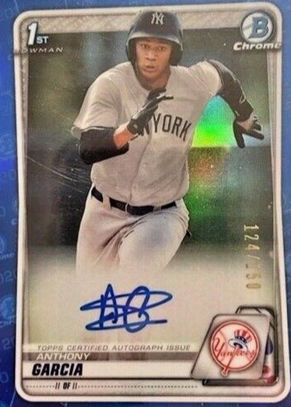 2020 Bowman Chrome Blue Refractor Anthony Garcia Yankees RC AUTO 47/150
