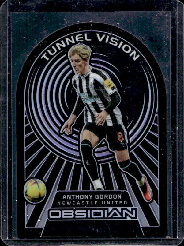 The Anthony Gordon 2022 Obsidian #13 Tunnel Vision - Electric Etch Purple /30 card is 1 of 11 Anthony Gordon's card variations in the 2022 Obsidian set being tracked by Sports Card Investor, including Tunnel Vision /115, Tunnel Vision - Electric Etch Orange /65, Tunnel Vision - Electric Etch Red Pulsar /30, Tunnel Vision - Electric Etch Blue /20, and Tunnel Vision - Electric Etch White Pulsar /11.