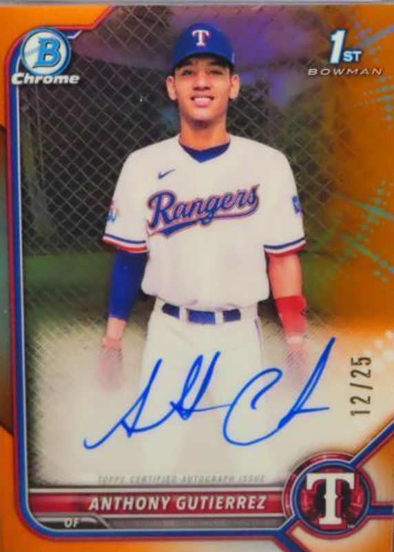 Auctions Ending Soon for Anthony Gutierrez 2022 Bowman Chrome #CPA-AG Prospect Auto - Orange Refractor /25 (1st) RAW