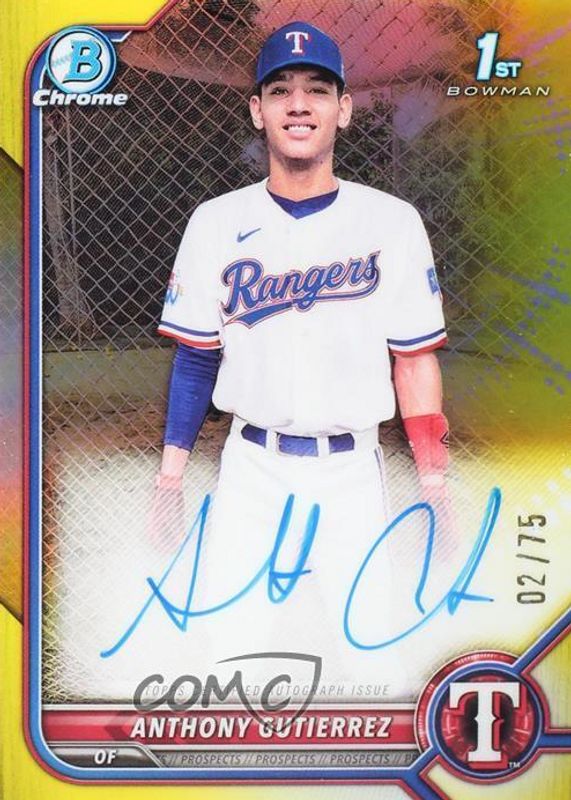 2022 Bowman Chrome Prospect Yellow Refractor 2/75 Anthony Gutierrez #CPA-AG Auto