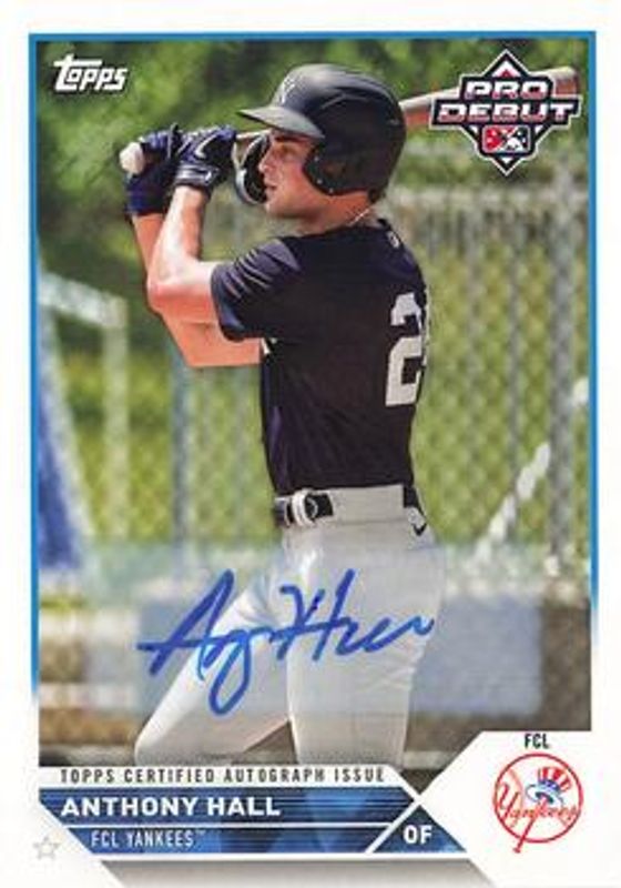 The Anthony Hall 2023 Topps Pro Debut #PD-13 Autographs card is 1 of 28 Anthony Hall's card variations in the 2023 Topps Pro Debut set being tracked by Sports Card Investor, including Base, Fuchsia /199, Sparkle /175, Blue /150, and Green /99.