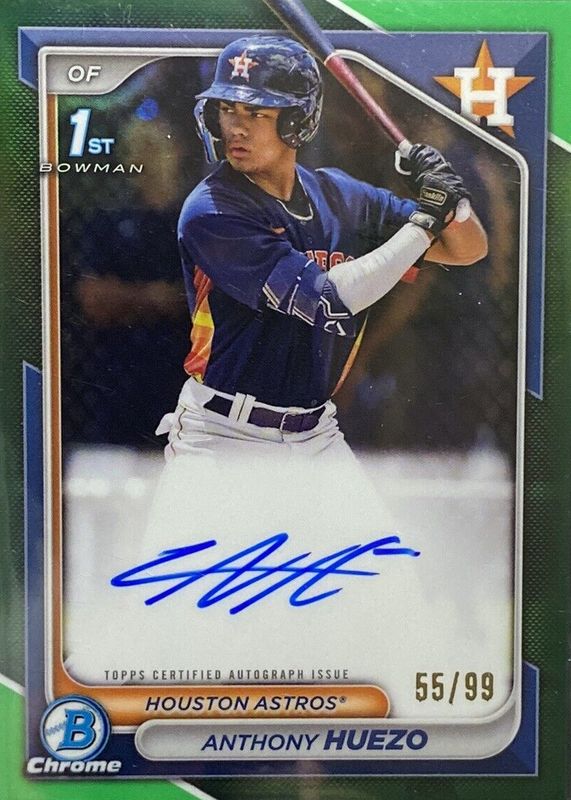 2024 Bowman Chrome Anthony Huezo Green Refractor 1st Prospect Astros Auto /99