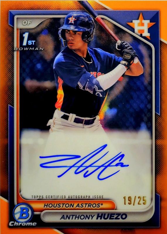 Anthony Huezo 2024 Bowman Chrome 1st Orange Refractor Auto /25
