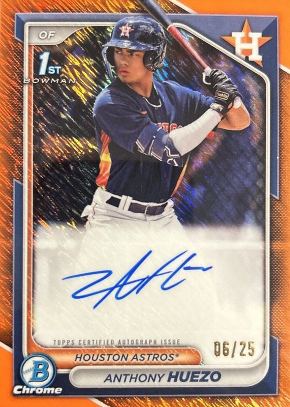 Anthony Huezo 2024 Bowman Chrome 1st Orange Shimmer Refractor Auto /25 Astros