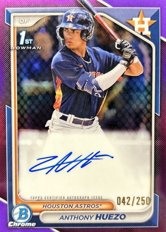 2024 BOWMAN CHROME ANTHONY HUEZO CPA-AHU 1ST PURPLE REFRACTOR AUTO 37/250 ASTROS