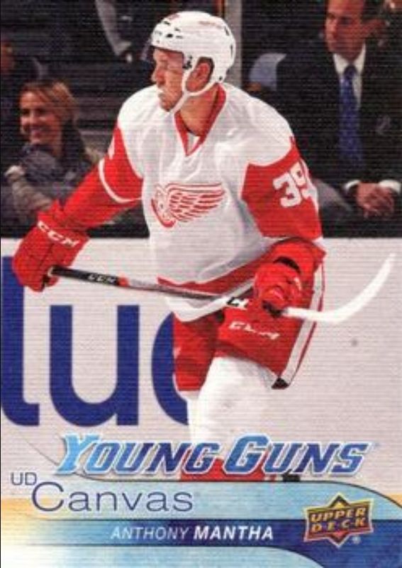 The Anthony Mantha 2016 Upper Deck #C92 Young Guns Canvas Rookie card is 1 of 25 Anthony Mantha's card variations in the 2016 Upper Deck set being tracked by Sports Card Investor, including Young Guns Base, Young Guns - Clear Cut, Young Guns - Gold Rainbow Foil, Young Guns - Jumbo, and Young Guns - Silver Foil.