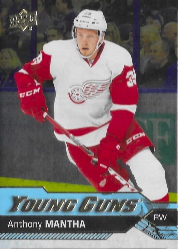 The Anthony Mantha 2016 Upper Deck #213 Young Guns - Silver Foil Rookie card in Raw condition has not changed in price in the last 30 days and was last sold for $10.95 .