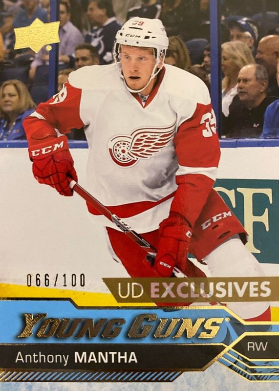 The Anthony Mantha 2016 Upper Deck #213 Young Guns - UD Exclusives /100 Rookie card in Raw condition has not changed in price in the last 30 days and was last sold for $70.00 .