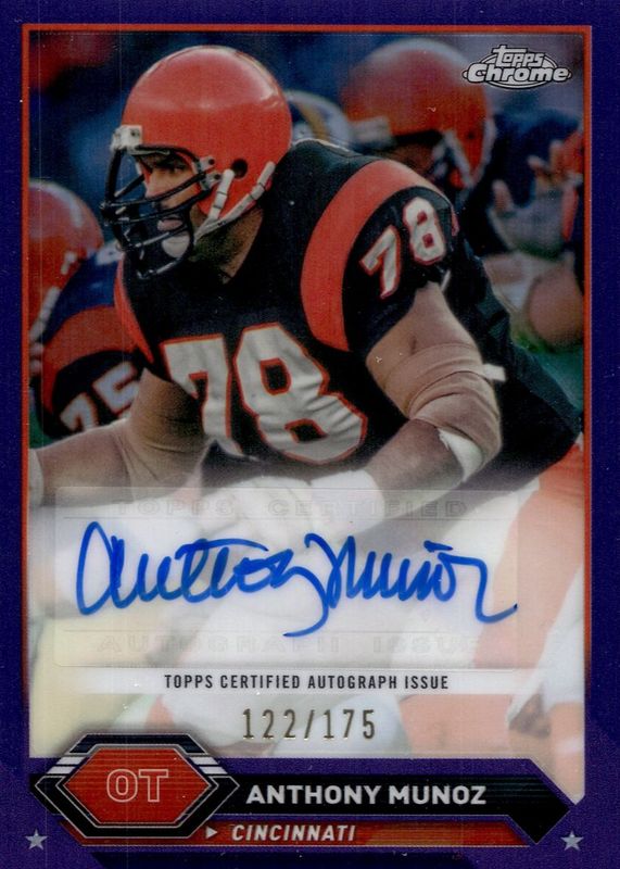 Best Prices Available For Sale of Anthony Munoz 2023 Topps Composite #TCA-AMU Chrome Autographs - Purple Refractor /175