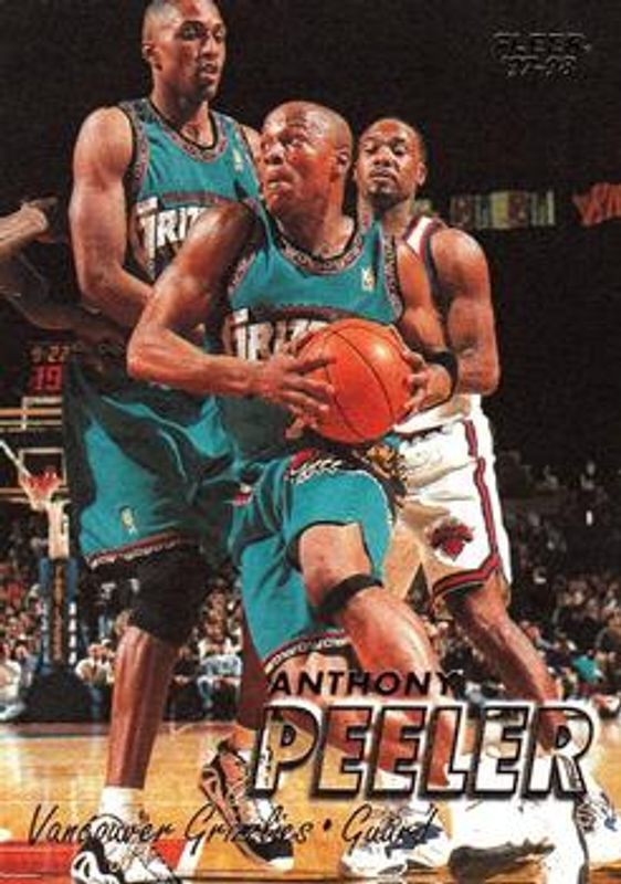 The Anthony Peeler 1997 Fleer #115 Base card is 1 of 3 Anthony Peeler's card variations in the 1997 Fleer set being tracked by Sports Card Investor, including Crystal, and Tiffany.