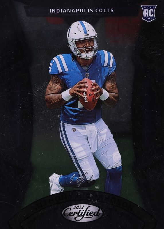 This card is 1 of 22 Anthony Richardson's card variations in the 2023 Certified set being tracked by Sports Card Investor, including Base Rookie /399, Mirror /325, Mirror Bronze /275, Mirror Pink /199, and Mirror Orange /149.