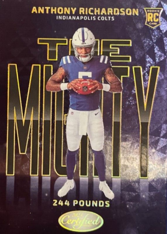 The Anthony Richardson 2023 Certified #M-13 The Mighty /(SSP) Rookie card in Raw condition has not changed in price in the last 30 days and was last sold for $13.78 .