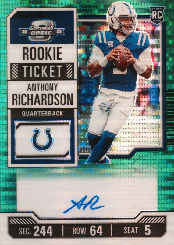 Anthony Richardson 2023 Contenders Optic #102 Rookie Ticket Auto - Green Pulsar /30 RAW Price Guide
