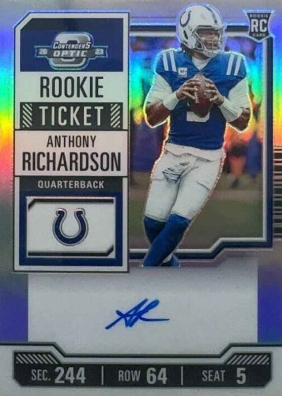 Best Prices Available For Sale of Anthony Richardson 2023 Contenders Optic #102 Rookie Ticket Auto - Silver