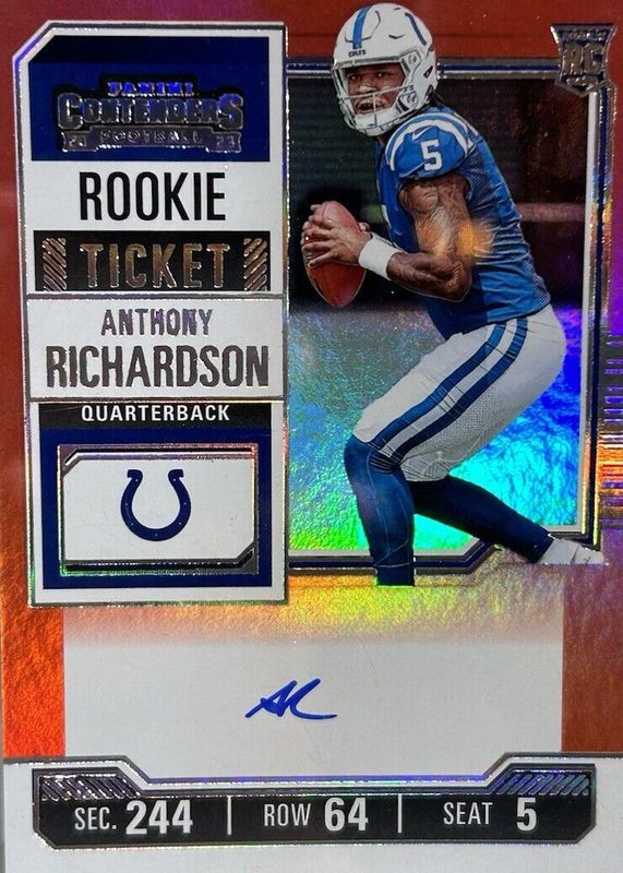 ANTHONY RICHARDSON 2023 CONTENDERS ROOKIE TICKET FOTL RED ZONE RC AUTO Q2029