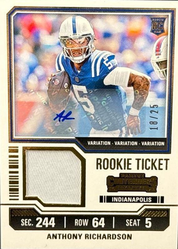 Anthony Richardson 2023 Contenders #TS2V Rookie Ticket Swatches Autographs Variation /25 RAW Price Guide