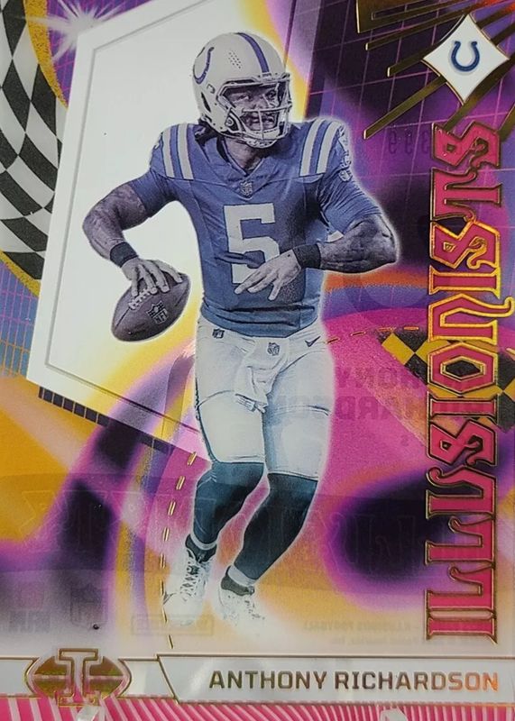 The Anthony Richardson 2023 Illusions #10 Illusionists - Pink /399 Rookie card in Raw condition has moved up $0.26 (+26.3%) in the last 30 days and was last sold for $1.25 .