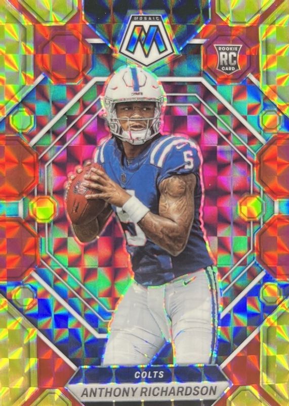 This card is 1 of 127 Anthony Richardson's card variations in the 2023 Mosaic set being tracked by Sports Card Investor, including Base, NFL Debut, Choice Red & Green, Green, and Mosaic.