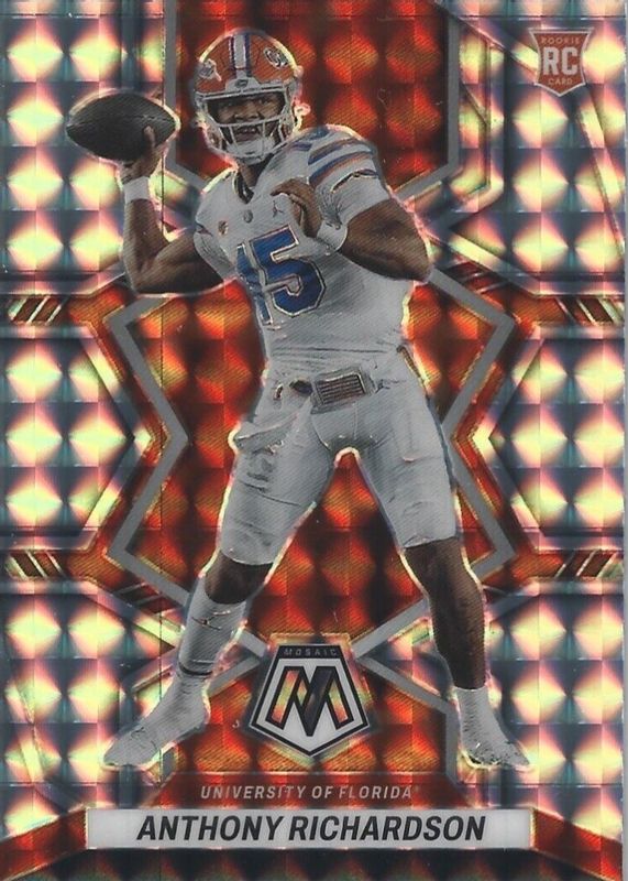 The Anthony Richardson 2023 Mosaic Draft Picks #4 Mosaic Rookie card in Raw condition has not changed in price in the last 30 days and was last sold for $15.50 .