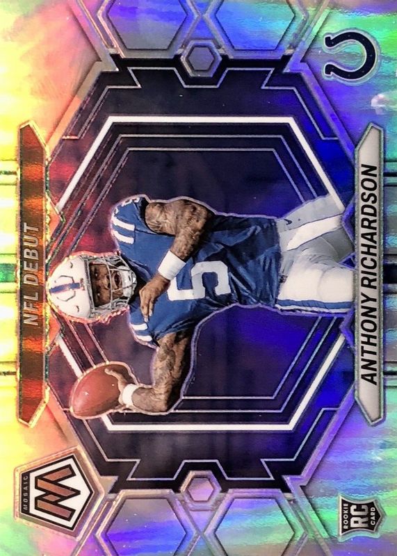 The Anthony Richardson 2023 Mosaic #ND-5 NFL Debut - Silver Rookie card in Raw condition has not changed in price in the last 30 days and was last sold for $0.99 .