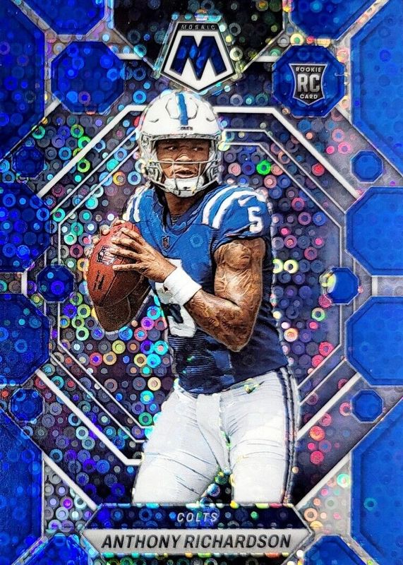 ANTHONY RICHARDSON RC 2023 PANINI MOSAIC #282 NO HUDDLE BLUE DISCO /75 PRIZM SP