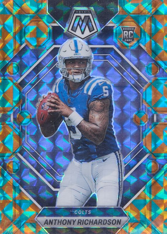 This card is 1 of 127 Anthony Richardson's card variations in the 2023 Mosaic set being tracked by Sports Card Investor, including Base, NFL Debut, Choice Red & Green, Green, and Mosaic.