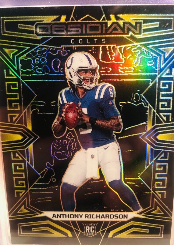 This card is 1 of 48 Anthony Richardson's card variations in the 2023 Obsidian set being tracked by Sports Card Investor, including Base, Asia, Electric Etch Red Flood /90, Electric Etch Purple /75, and Electric Etch Contra /(SSP).