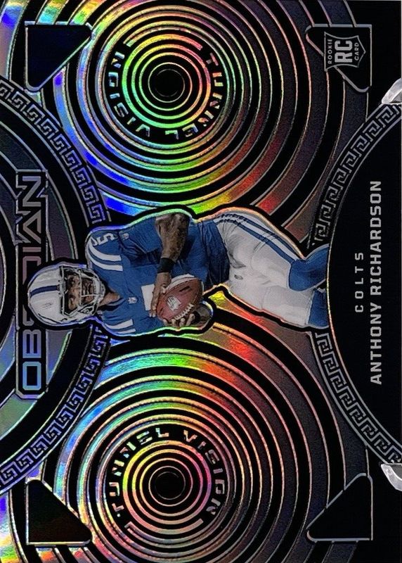 The Anthony Richardson 2023 Obsidian #3 Tunnel Vision /135 Rookie card in Raw condition has moved up $8.25 (+367%) in the last 30 days and was last sold for $10.50 .