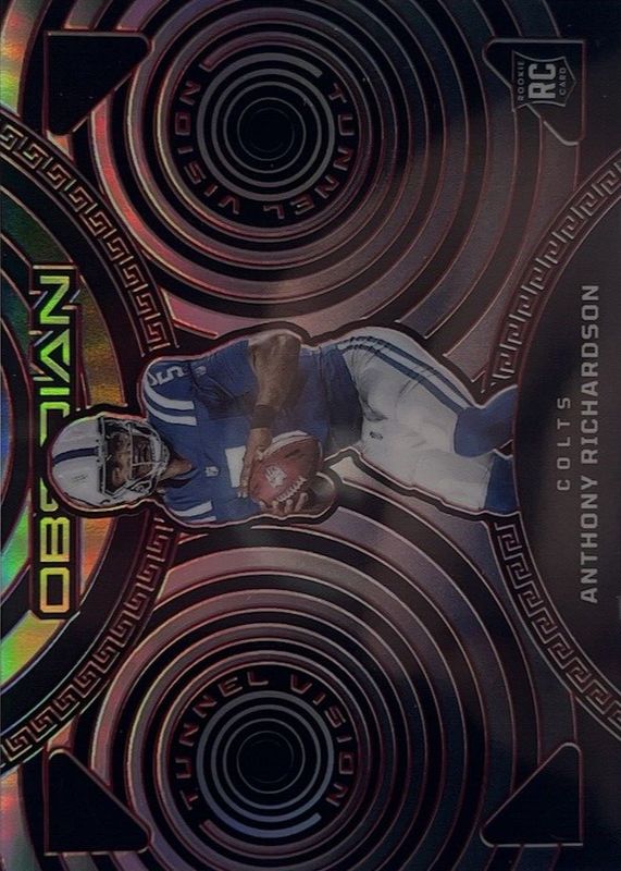 The Anthony Richardson 2023 Obsidian #3 Tunnel Vision - Electric Etch Red /10 Rookie card in Raw condition has not changed in price in the last 30 days and was last sold for $177.50 .