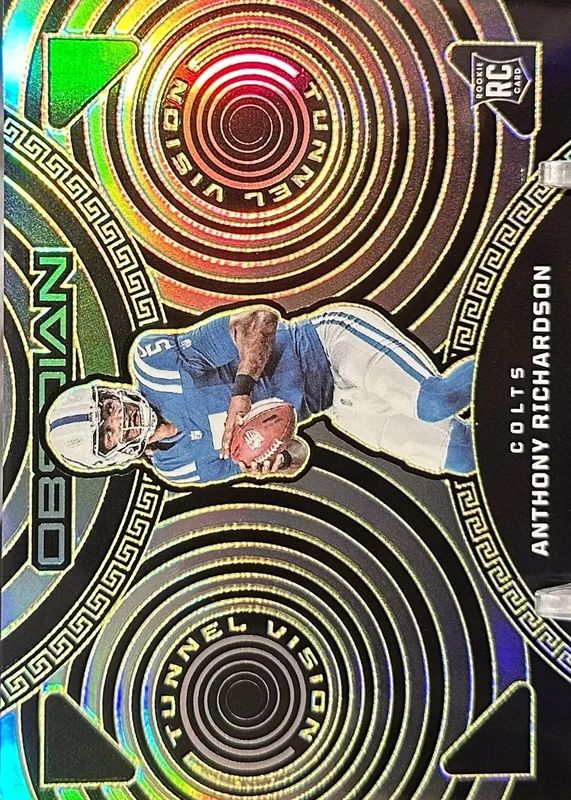 The Anthony Richardson 2023 Obsidian #3 Tunnel Vision - Electric Etch Yellow /25 Rookie card in Raw condition has not changed in price in the last 30 days and was last sold for $46.00 .