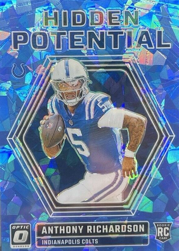 2023 Donruss Optic Hidden Potential Blue Ice Prizm Anthony Richardson 04/15 RC