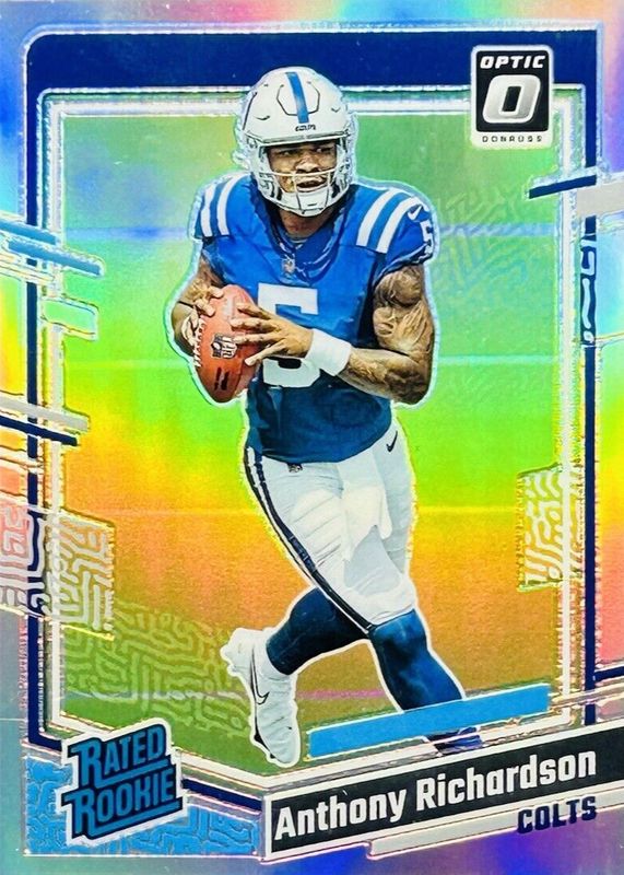 The Anthony Richardson 2023 Optic #247 Holo Rookie card in Raw condition has moved down -$0.75 (-27.3%) in the last 30 days and was last sold for $2.00 .