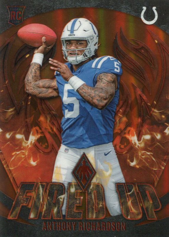 The Anthony Richardson 2023 Phoenix #FU-6 Fired Up - Orange /75 Rookie card in Raw condition has not changed in price in the last 30 days and was last sold for $5.00 .