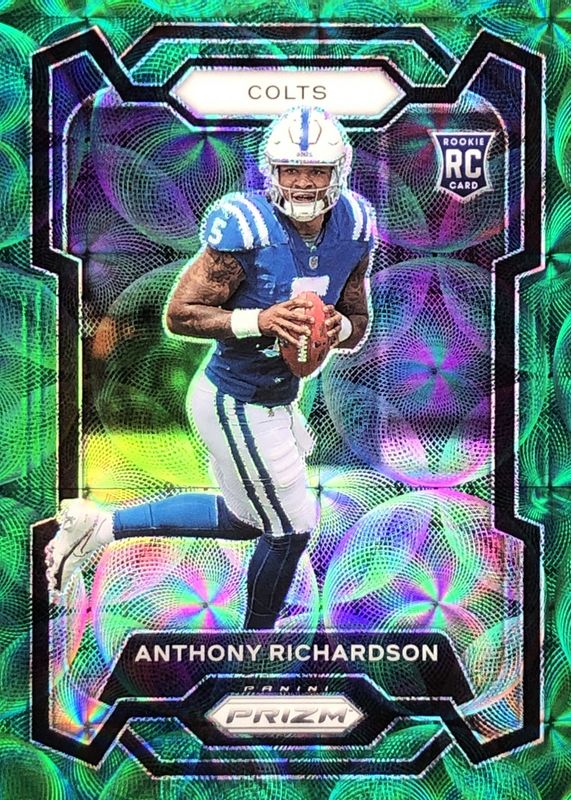This card is 1 of 122 Anthony Richardson's card variations in the 2023 Prizm set being tracked by Sports Card Investor, including Base, Disco, Green, Green Ice, and Green Wave.