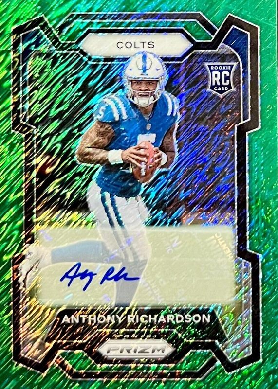 Auctions Ending Soon for Anthony Richardson 2023 Prizm #343 Rookie Autographs - Green Shimmer /5 RAW