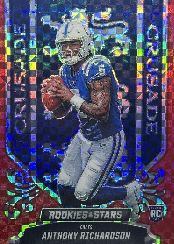 The Anthony Richardson 2023 Rookies & Stars #CR-13 Crusade - Red Plaid card in Raw condition has not changed in price in the last 30 days and was last sold for $0.99 .