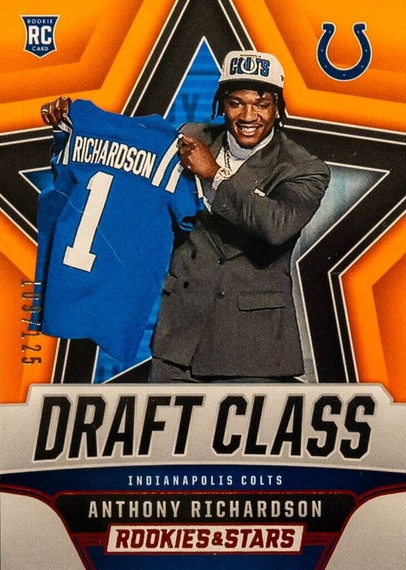 ANTHONY RICHARDSON 2023 PANINI ROOKIES & STARS DRAFT CLASS ORANGE 78/125 AF1