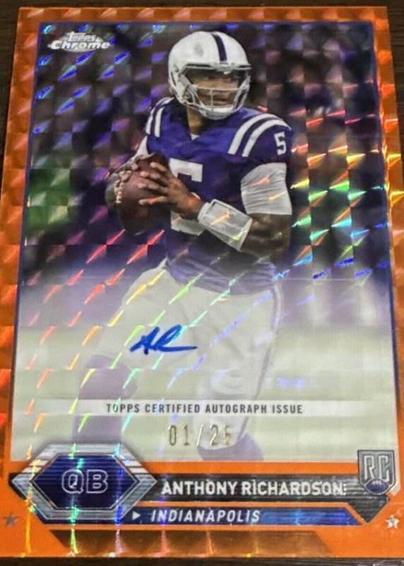 Auctions Ending Soon for Anthony Richardson 2023 Topps Composite #TCA-AR Chrome Autographs - Geometric Orange /25 Rookie RAW