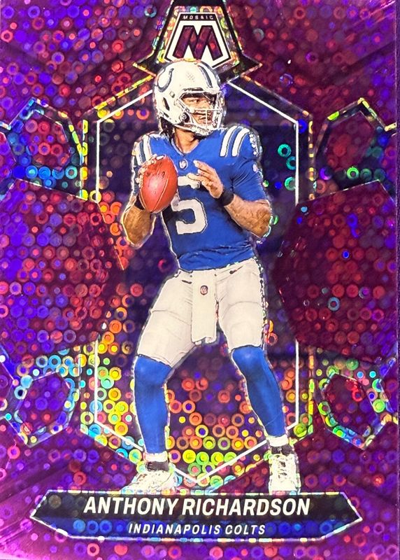 Best Prices Available For Sale of Anthony Richardson 2024 Mosaic #92 No Huddle Purple /50
