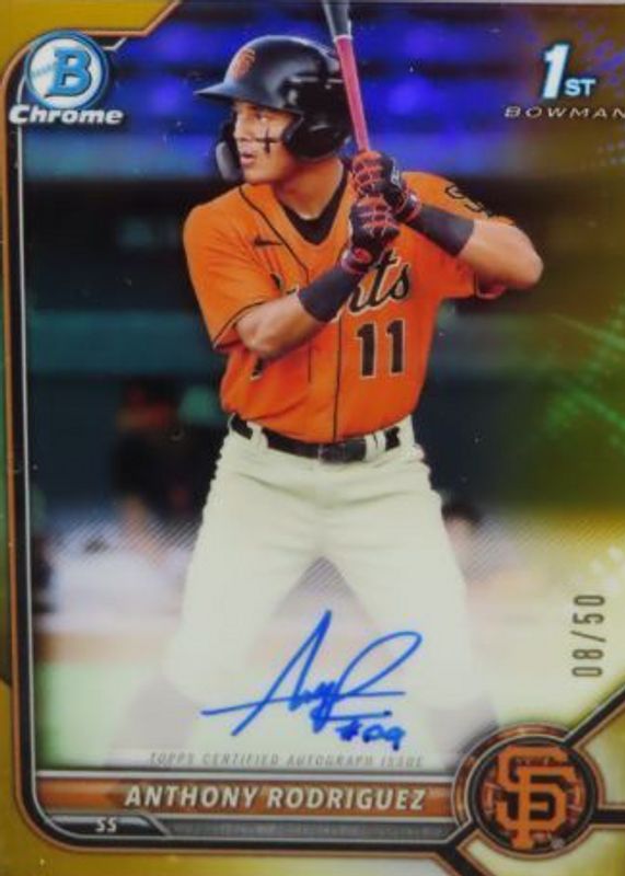 Auctions Ending Soon for Anthony Rodriguez 2022 Bowman #CPA-ARZ Chrome Prospect Auto - Gold Refractor /50 (1st) RAW