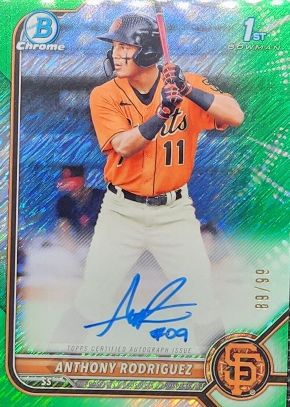 Anthony Rodriguez 2022 Bowman Chrome 1st Bowman Auto Green Shimmer /99 Giants