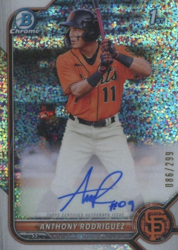 2022 Bowman Chrome Anthony Rodriguez 1st Prospect Speckle Refractor Auto 150/299