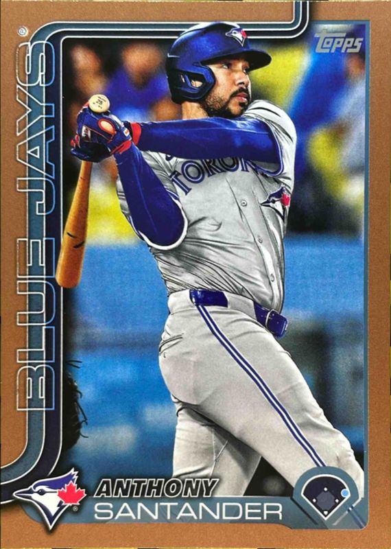 The Anthony Santander 2025 Topps #586 Gold /2025 card is 1 of 120 Anthony Santander's card variations in the 2025 Topps set being tracked by Sports Card Investor, including #586 Base, #79 Base, #586 Aqua Holo Foil, #79 Aqua Holo Foil, and #586 Diamante Foil.
